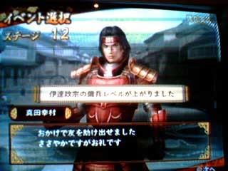 话说那日,我们英明神武的独眼龙大人伊达政宗不知道为什么放着堂堂的大名不做却跑到佣兵演武里瞎晃荡,正在百无聊赖之时,他那位心仪的红衣天使——真田幸村满面愁容地出现在了他的眼前,一打听才知道原来是因为小幸村的好朋友被人给绑架了!这光天化日朗朗乾坤,岂能容得此等伤天害理之事?!为了爱!为了正义!代表月亮消灭你!……当然说这话的不是政宗而是他的死对头直江兼续~(众人:也不对吧?!!这最后一句……||||)反正对政宗而言,恐怕这一生都很难再有机会让小幸村主动跟着自己满场跑、十次击败敌将有九次听到的都是小幸村的赞扬、尤其值得一提的是这次碰到的战场规则还是在体力减少的状态下开场!呼呼呼~~~~开场不到30秒就听到了小幸村那句满怀深情的“私のために、かたじけない!”多么完美的一出英雄救美啊哈哈哈~~~~~~~~~~~~啊咧?我们这次是干什么来的……?赶忙调出菜单查找胜败条件……