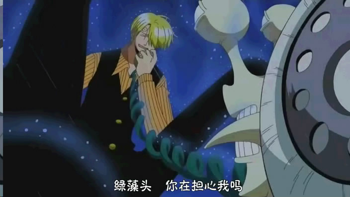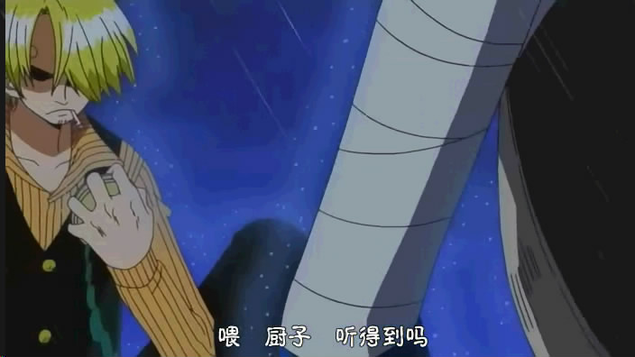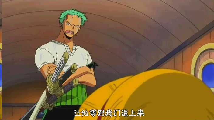 情况是:sanji和zoro分别在两辆海列车上(sanji那边还有长鼻子,zoro那边还有剩下那几个)。通过电话虫联系的时候,路飞让sanji大胆放手去做某件比较危险的事,于是乎zoro就做不住鸟~~出现以下若干画面: