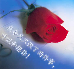 事实上,已经记不起收了多少的鲜花,家人的、朋友的。。。。。。心里的甜蜜至今仍在延续。可是这次的不同,它是三十八年一个轮回的七夕节的,它是一个全心爱我的人送的,它缠缠绕绕的,手上心里的甜和香,丝毫没有绝衰的倾向。或者第一次的爱,第一次的真爱都是这样的。我已经不是豆蔻年华的小女生,可是我仍旧会独自的甜蜜。那束鲜花,她静静怒放,静静吐着芬芳,她也静静的吸收这我给她的养分,但是她却静静的干掉了,虽然极力保持着自己的容颜,但是她真的就这样被风干了,可是没有带走什么,除了她一部分的美丽容颜。我说:真是的,它干了。我说着带着丝丝的遗憾。他说:没关系,我再送你一枝种在花盆里的玫瑰,让她每天为你绽放。他怜惜地看着镜子中的我说。亲爱的,不用了,因为我用心在浇灌着你用心送的花,每天我必做的两件事就是呼吸和想你。