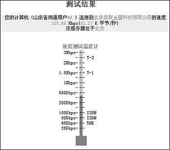 网上有不少提供网速测试的站点,推荐大家进入http://www.linkwan.com,选择你要连接的服务器,很快就会得到测试结果(如图2,测试结果及该结果与标准带宽的比较一目了然)。此外你还可以进入http://www.linkwan.com/gb/broadmeter/speed/dslreports.htm,查看你与位于美国的测试网站的连接情况。