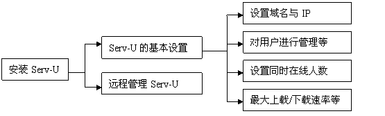 Serv-U有着较合理且严密的管理体系,它包括设置FTP服务器的最大连接数,分别为用户设置最大上载、下载速度、设置磁盘配额、各种提示信息、上载下载比率等,在下面的介绍中,读者将体会到Serv-U管理功能所带来的便利,比IIS的FTP功能方便,且强大多了。