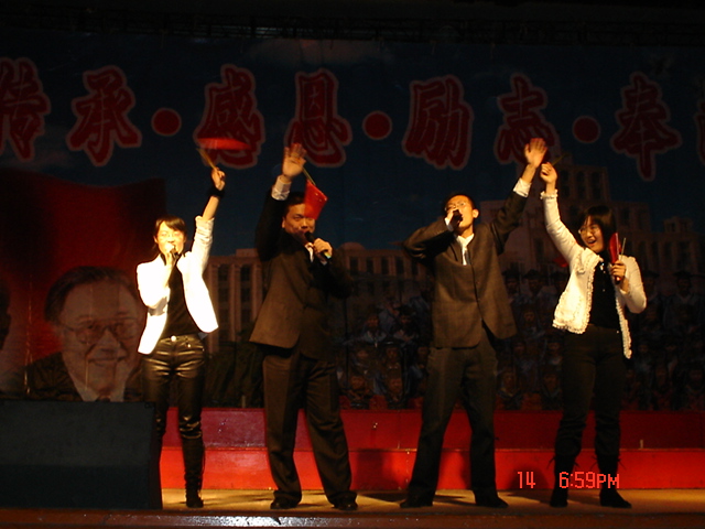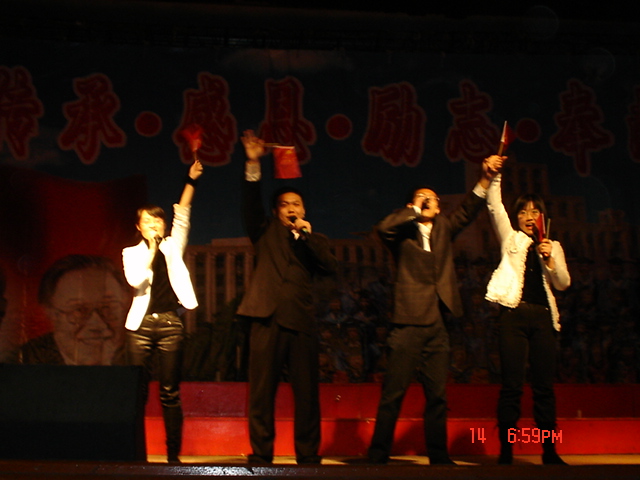 我才知道自己的嘴原来张的好大呀!不过我们这个组合在形象上似乎有些滑稽,不过将就着看吧!我们的歌声还是可以的:)