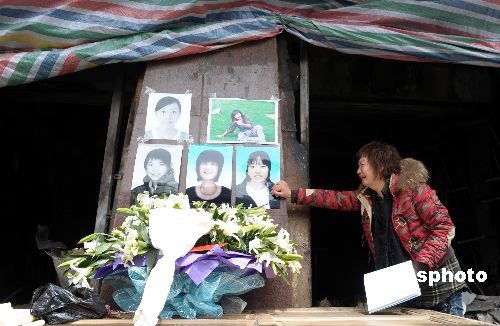 “以纯”服装店老板唐青宴目睹了5个女孩被烧死的惨状。唐青宴说,阁楼里的景象让他号啕大哭。5个女孩散坐在小床边,有的坐着,有的躺着,她们的脸都被烤黑了。