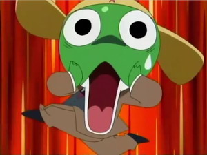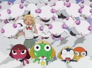 然后要说到将出人意料发挥得登峰造极的《KERORO》,不用怀疑,它就是为了让你想不到而存在的。宇宙青蛙千里迢迢来侵略地球,结果反被地球人俘虏,统治者当不成,反成了菲佣,每次构思出奇奇怪怪的侵略计划,最后都被自己的笨拙破坏……加上数不胜数的恶搞、影射,整部动画已经不能用正常的心态来观赏了。每当热血bt的主题曲响起,我们就等着看这次笨青蛙又有什么馊主意要搬起石头砸自己的脚了吧。