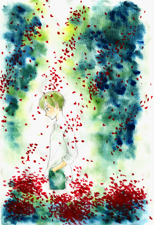 画了个晃眼的背景,红红绿绿一大片……没有学美术果然是正确的,实在米天份。反正这也只是涂鸦,开心就好,哈哈~~干笑……