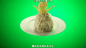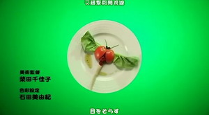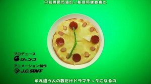 看到片头时愣了一下,一曲终了,再回看一遍,终于确定这不是一部美食动画。白盘子在绿色的背景里转动,里面活蹦乱跳着布丁、匹萨、意大利面条和做成骷髅的小饼干,蝴蝶粉垒成的小人扭着脖子跳舞,两块红艳艳的牛排友好地蹭着脑袋,西红柿做的瓢虫在生菜叶子上振翅欲飞,华夫饼大门的缝隙里巧克力酱涂的人影探头探脑……看着这些精灵古怪的小东西,不由赞叹一声:“这就是艺术啊!”