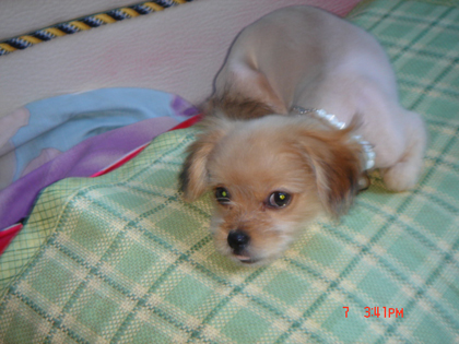 洗澡25元,洗眼睛10元,洗耳朵10元,剪指甲5元,剪毛50元。狠狠心,做了!谁让她是我最爱最亲的豆丁呢?!结果抱回来的时候身上疤痕累累,可能是推子太老,可能是技术不好。总之,我的宝贝嚎叫了3个小时,而我心痛了整整一天。